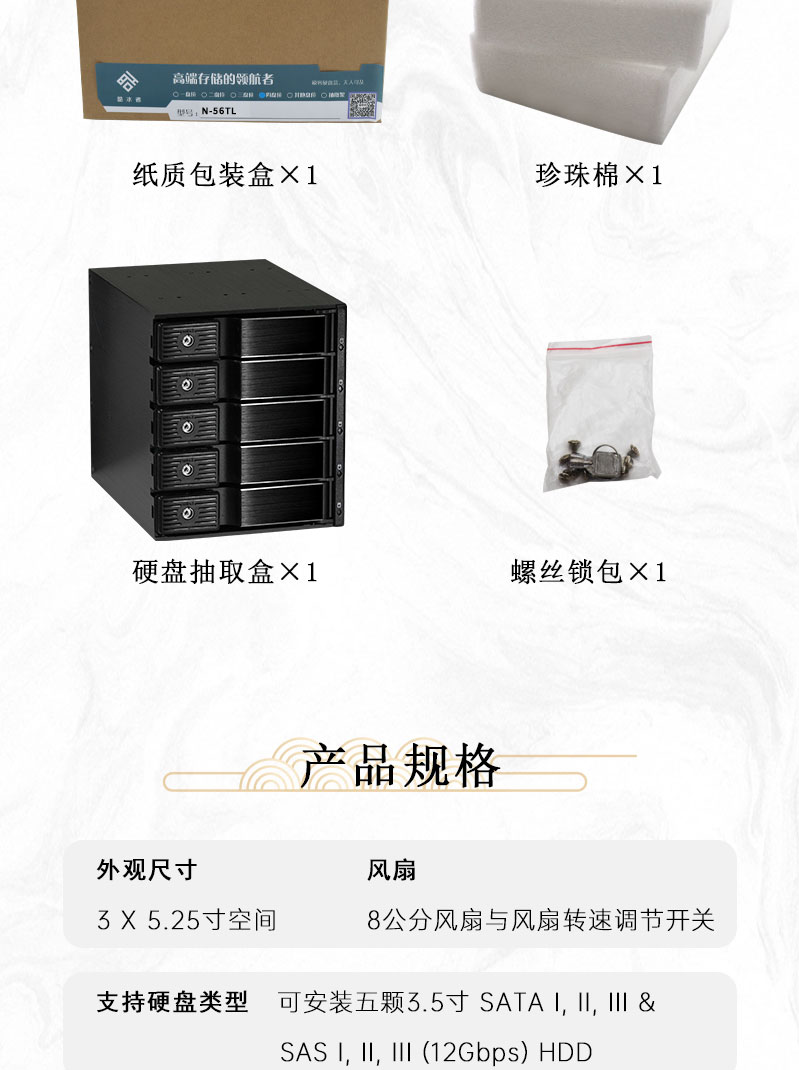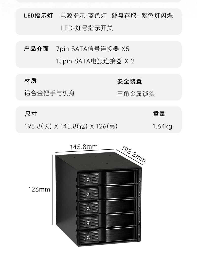 | 适用硬盘尺寸 | 可安装五颗3.5"硬盘 |