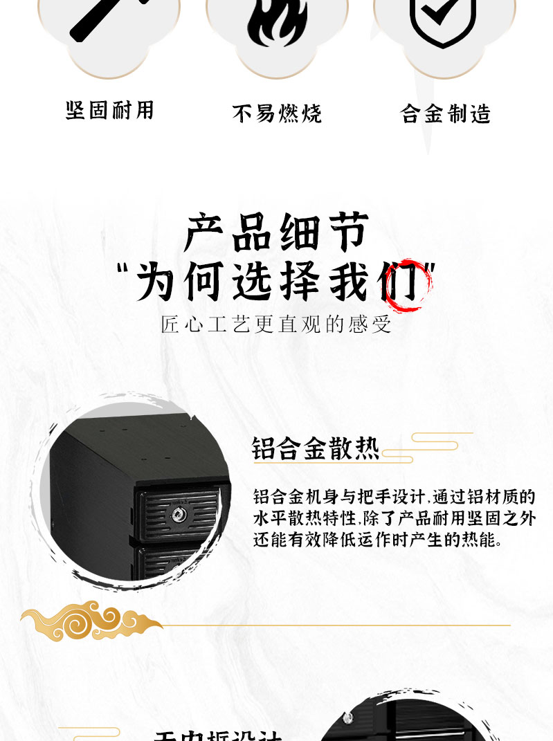 | 材质 | 塑料前面板, 塑料后面板, 铝合金把手, 铝合金外框 |
