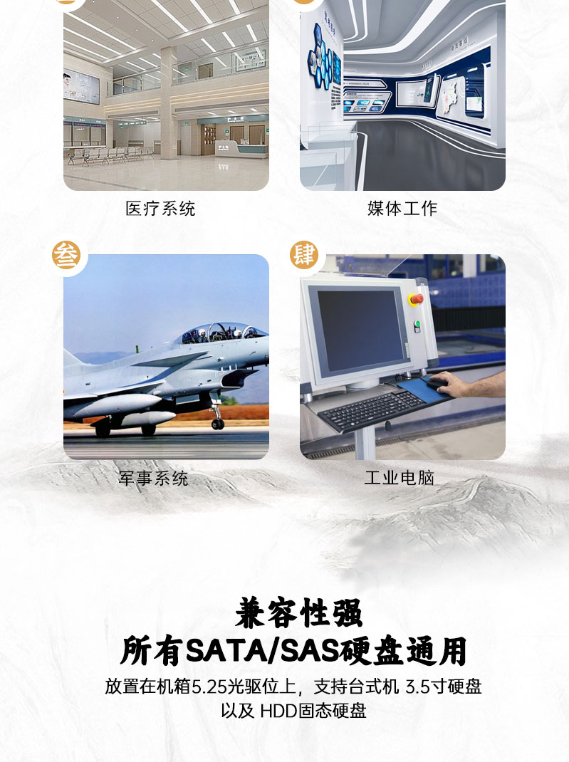 | 数据传输速率 | 支持SATA I, II, III & SAS I, II, III(12Gbps) |