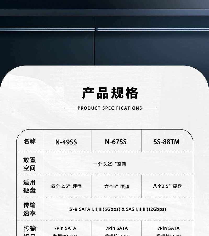 | 数据传输速率 | 支持SATA I, II, III & SAS I, II, III(12Gbps) |