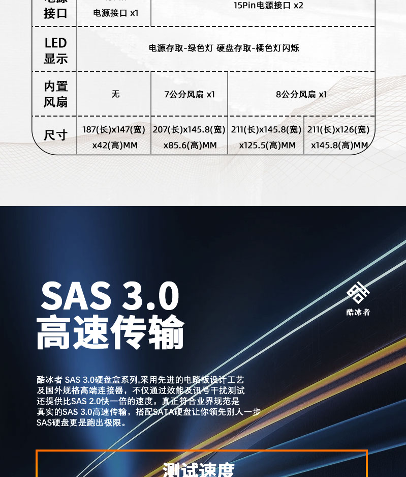 | 数据传输速率 | 支持SATA I, II, III & SAS I, II, III(12Gbps) |