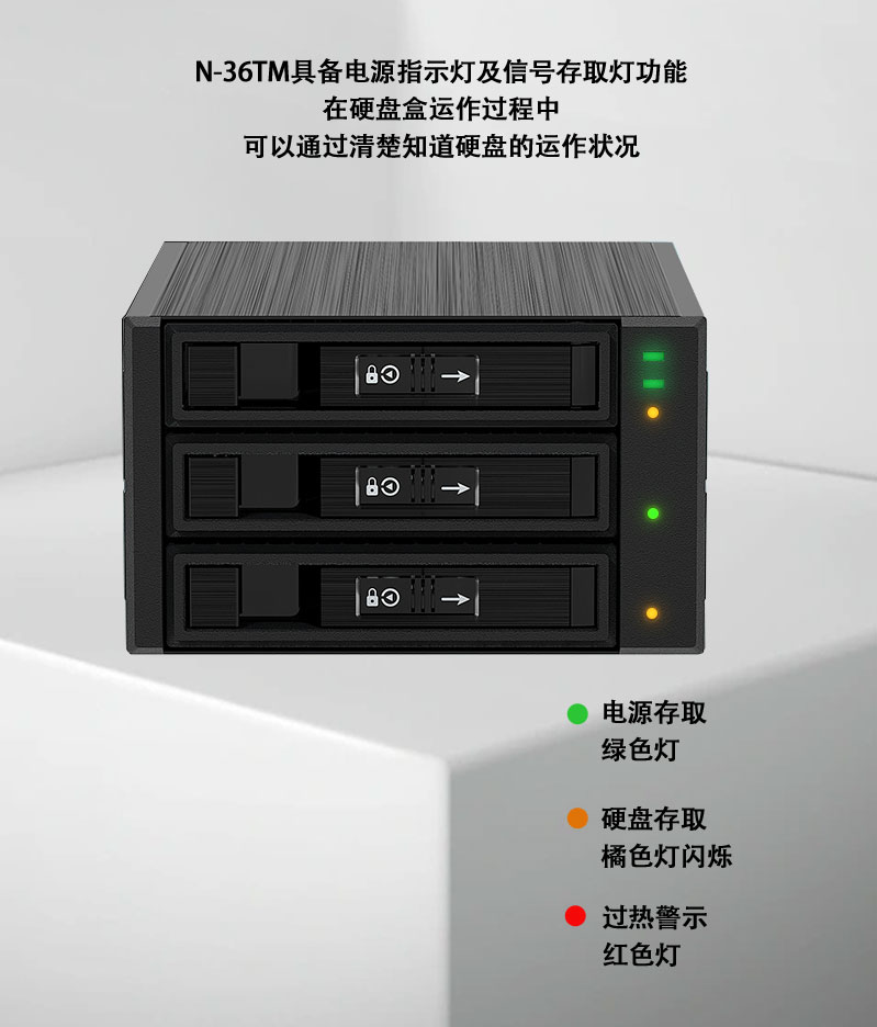 | 适用硬盘尺寸 | 可安装三颗3.5"或2.5"硬盘 |