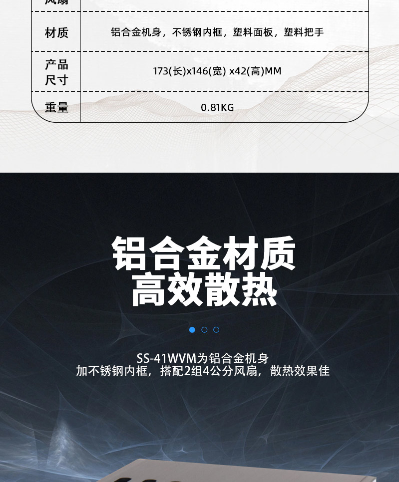 | 产品尺寸 | 173(长) x 146(宽) x 42(高) mm |