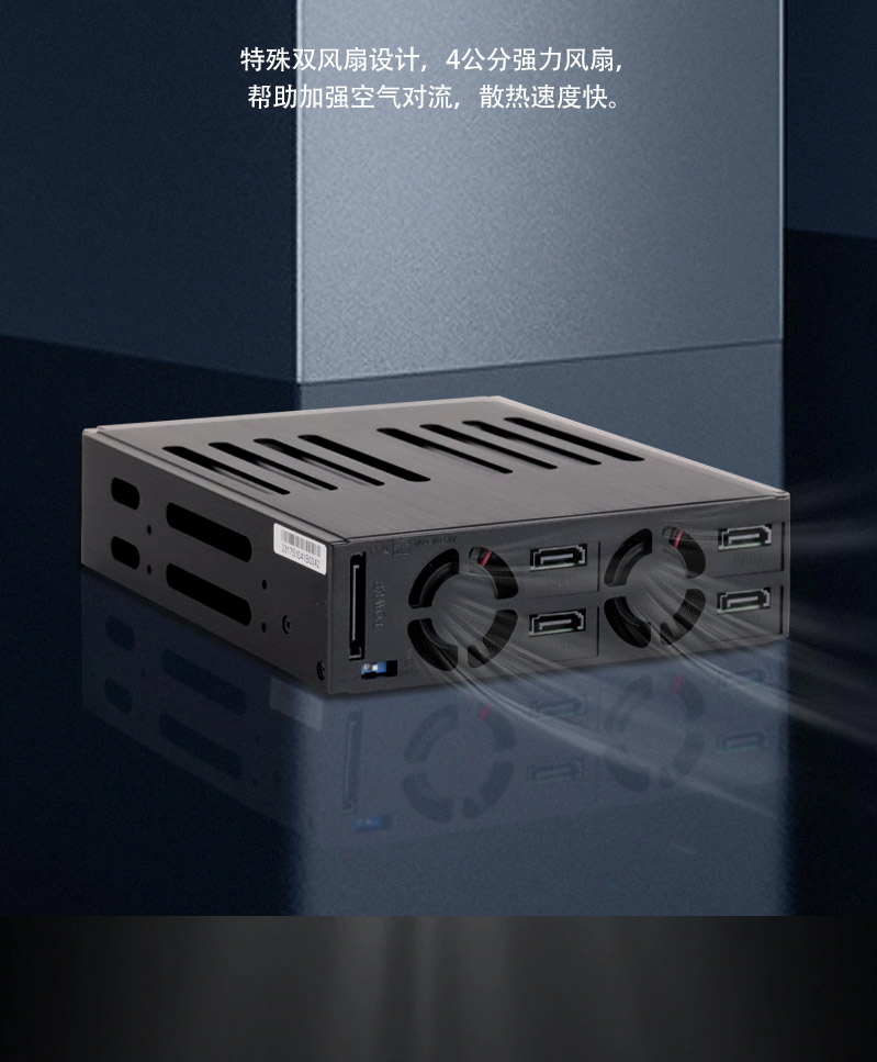 | 放置空间 | 用一个5.25“光驱位,容纳四个硬盘 |