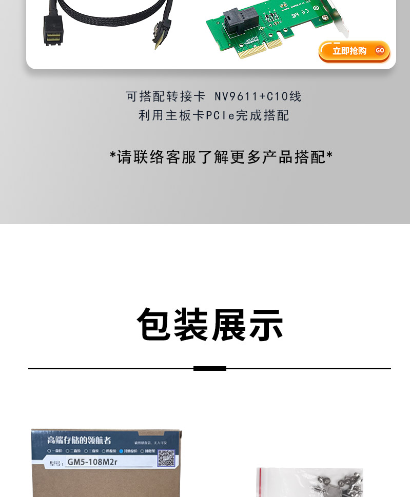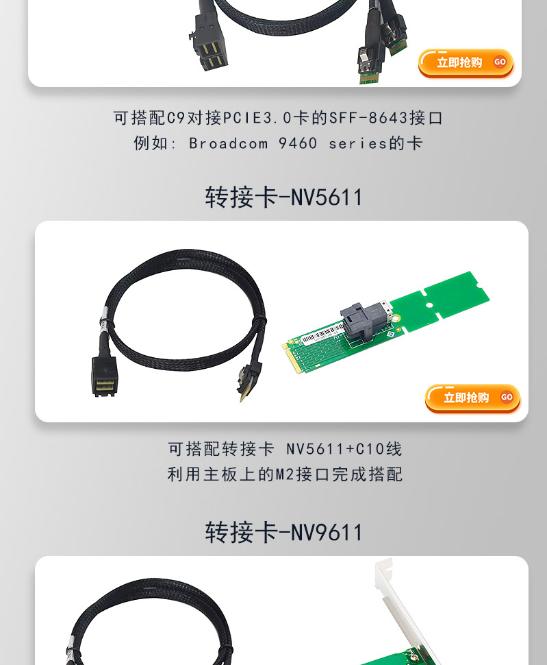 SFF-8654数据接口x8 小4PIN 电源接口x2 |