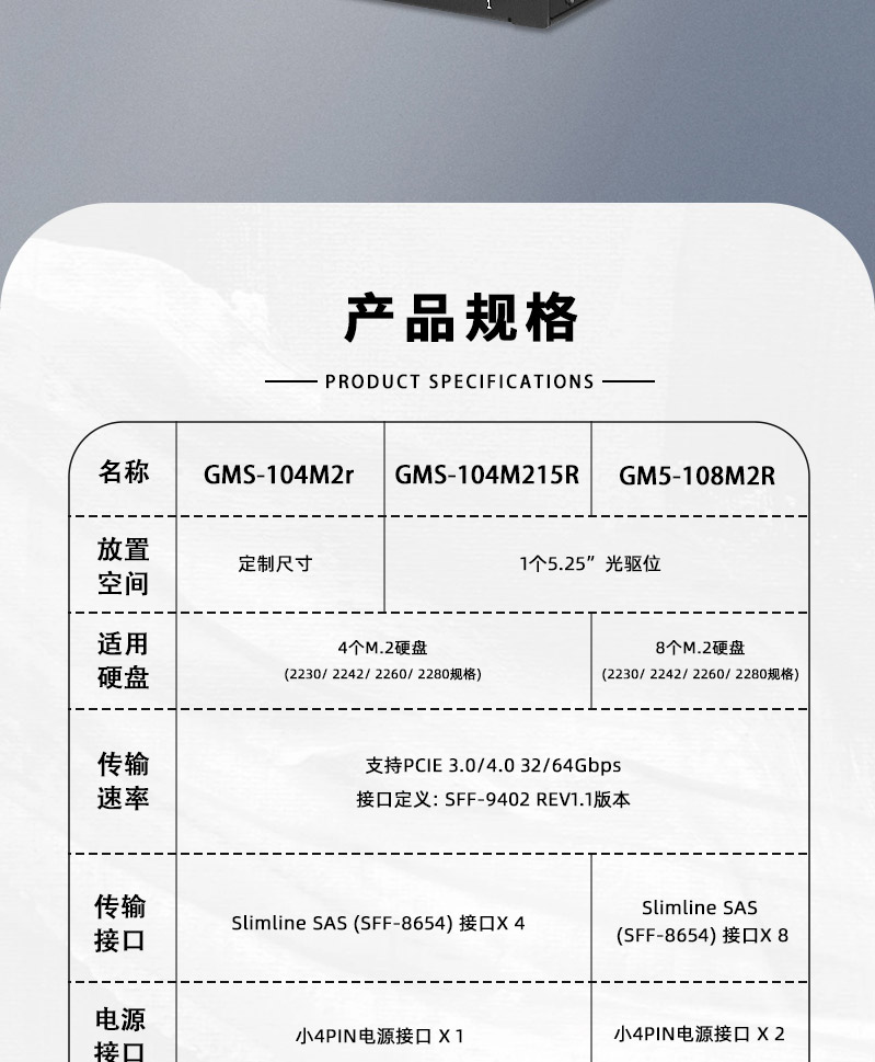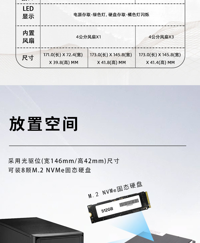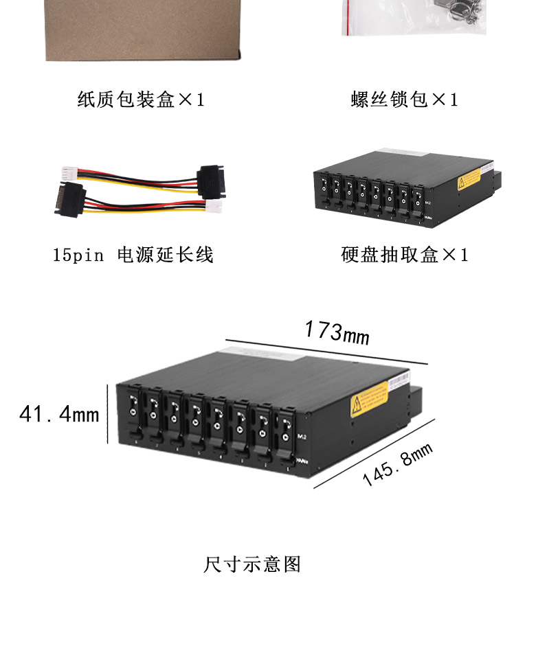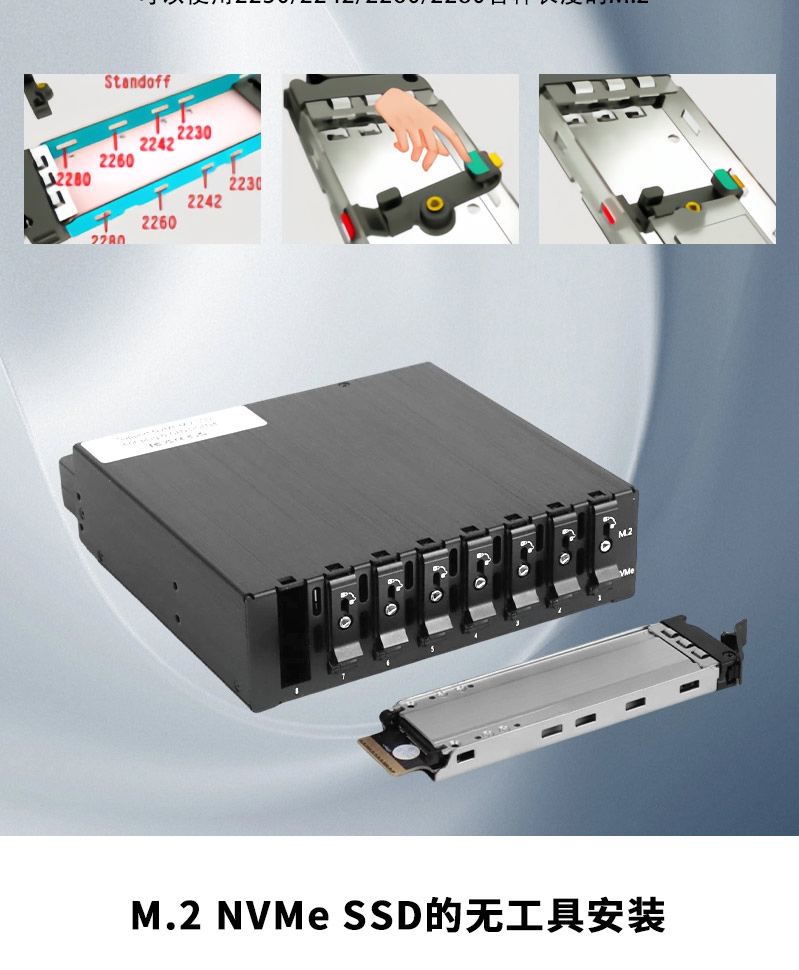 | 适用硬盘尺寸 | 可安装八颗 2230/2242/2260/2280规格 |
