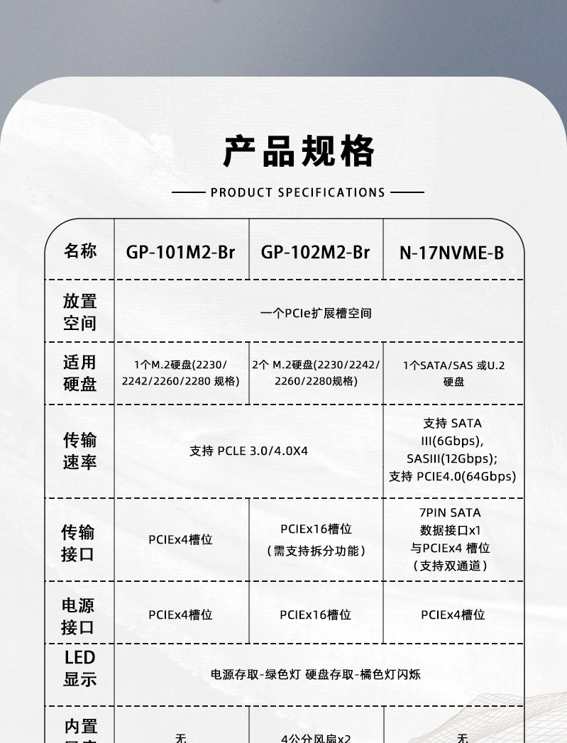 | 数据传输速率 | 支持PCIe 3.0/4.0 x4 32/64 Gbps |