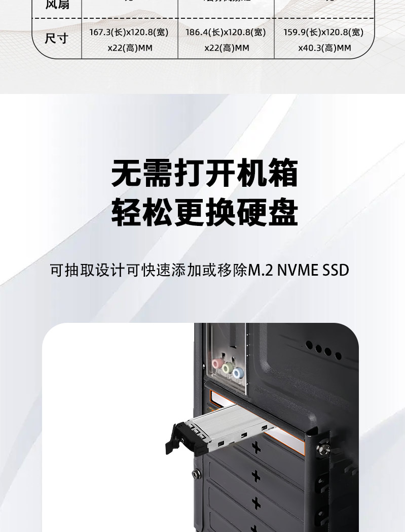 | 放置空间 | 一个PCle扩展槽空间 |