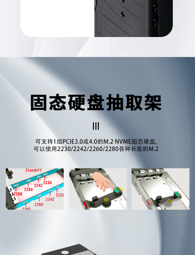 | 适用硬盘尺寸 | 可安装一颗 M.2硬盘/2230/2242/2260/2280规格 |
